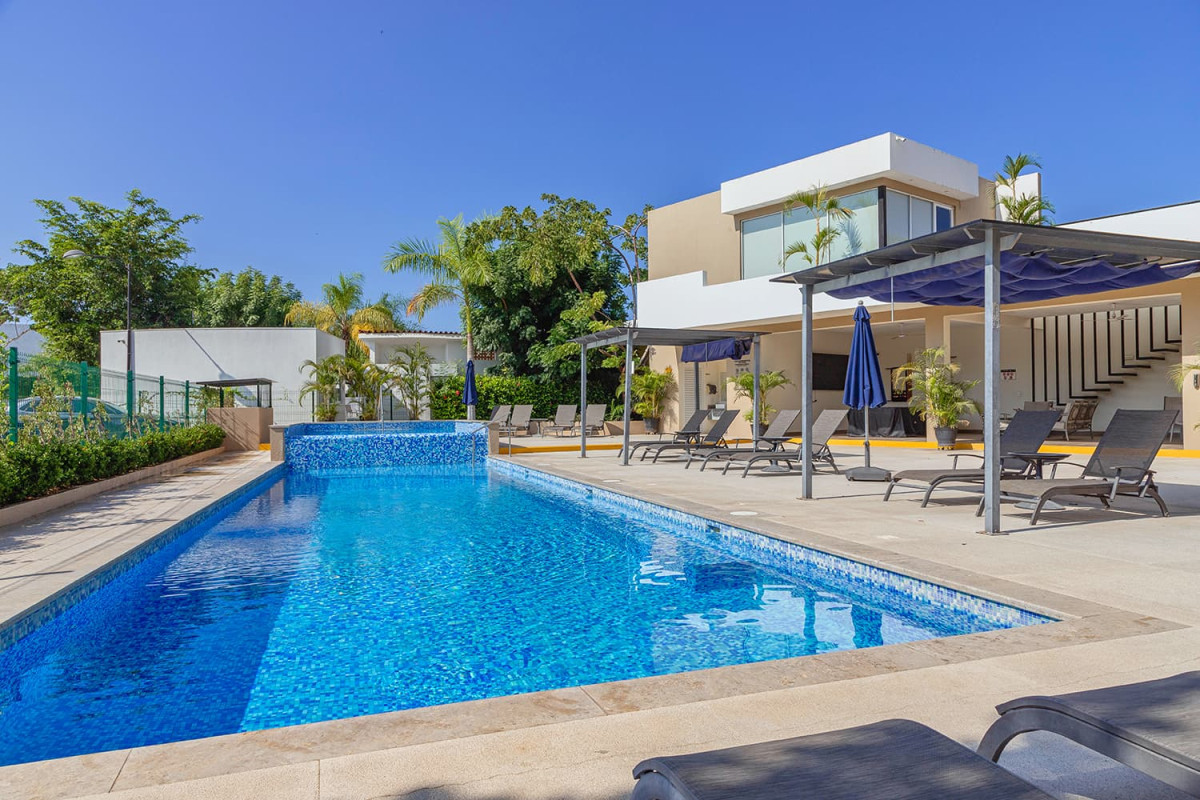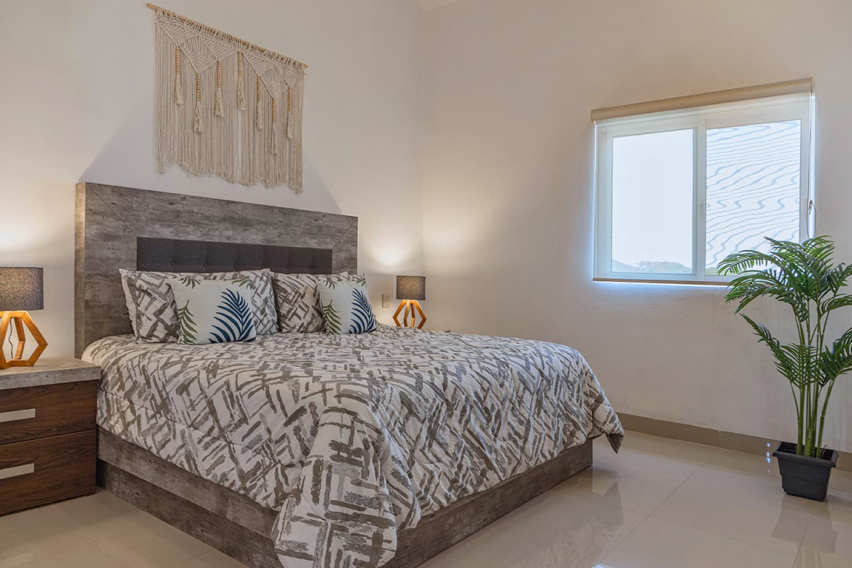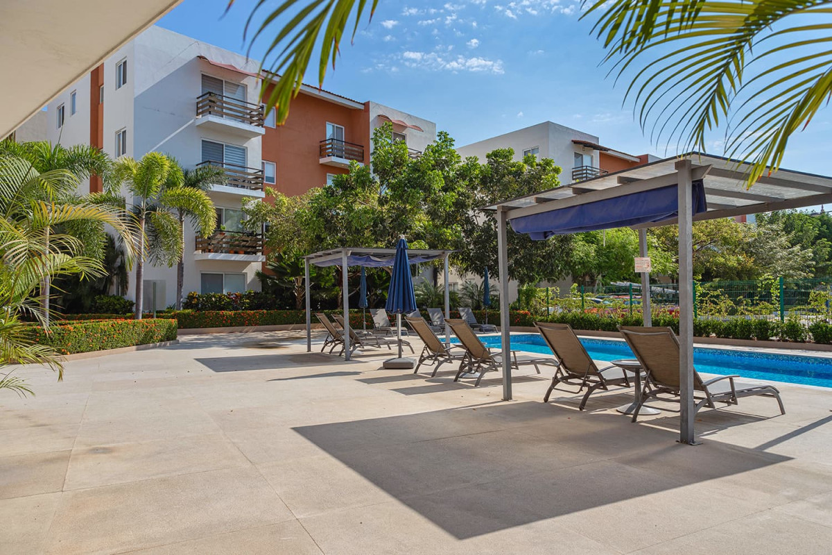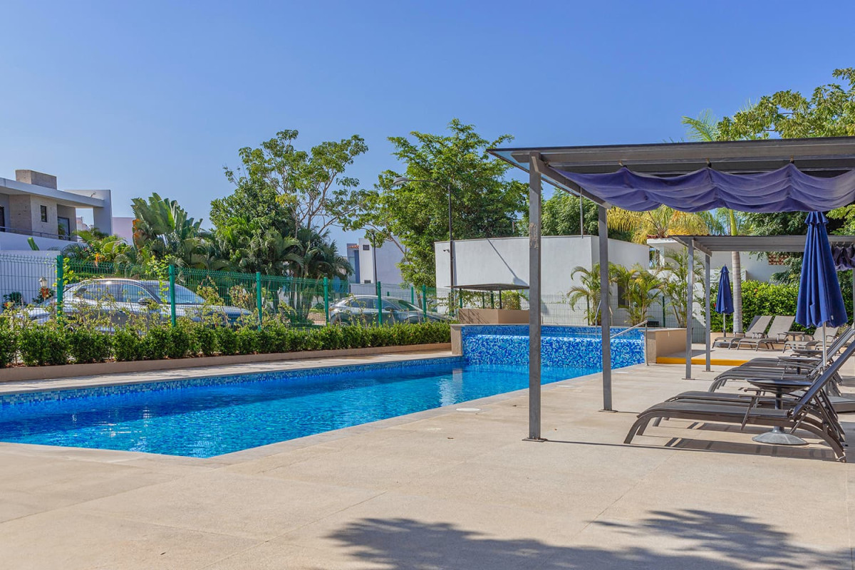 Fully furnished 2-bedroom, 2-bath condo in the gated community Azulejos. Bright, air-conditioned living area with open kitchen, granite countertops, and stainless steel appliances. The primary bedroom features a cathedral ceiling, ensuite bath, and ample closet space. Second bedroom ideal for guests or a home office. Community amenities include gym, jacuzzi, swimming pool, BBQ area, and lounge. Pet-friendly and minutes to Vidanta, golf, beaches, the airport (12 min) and the Romantic Zone (40 min).