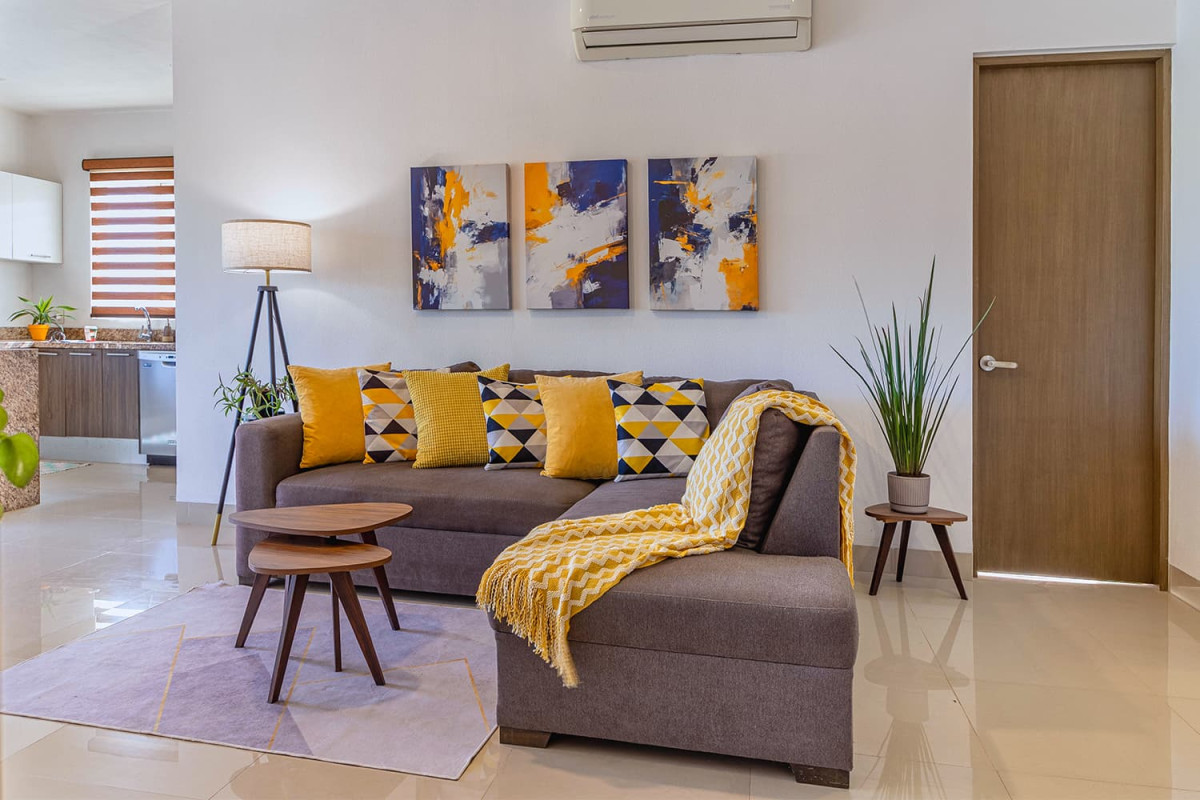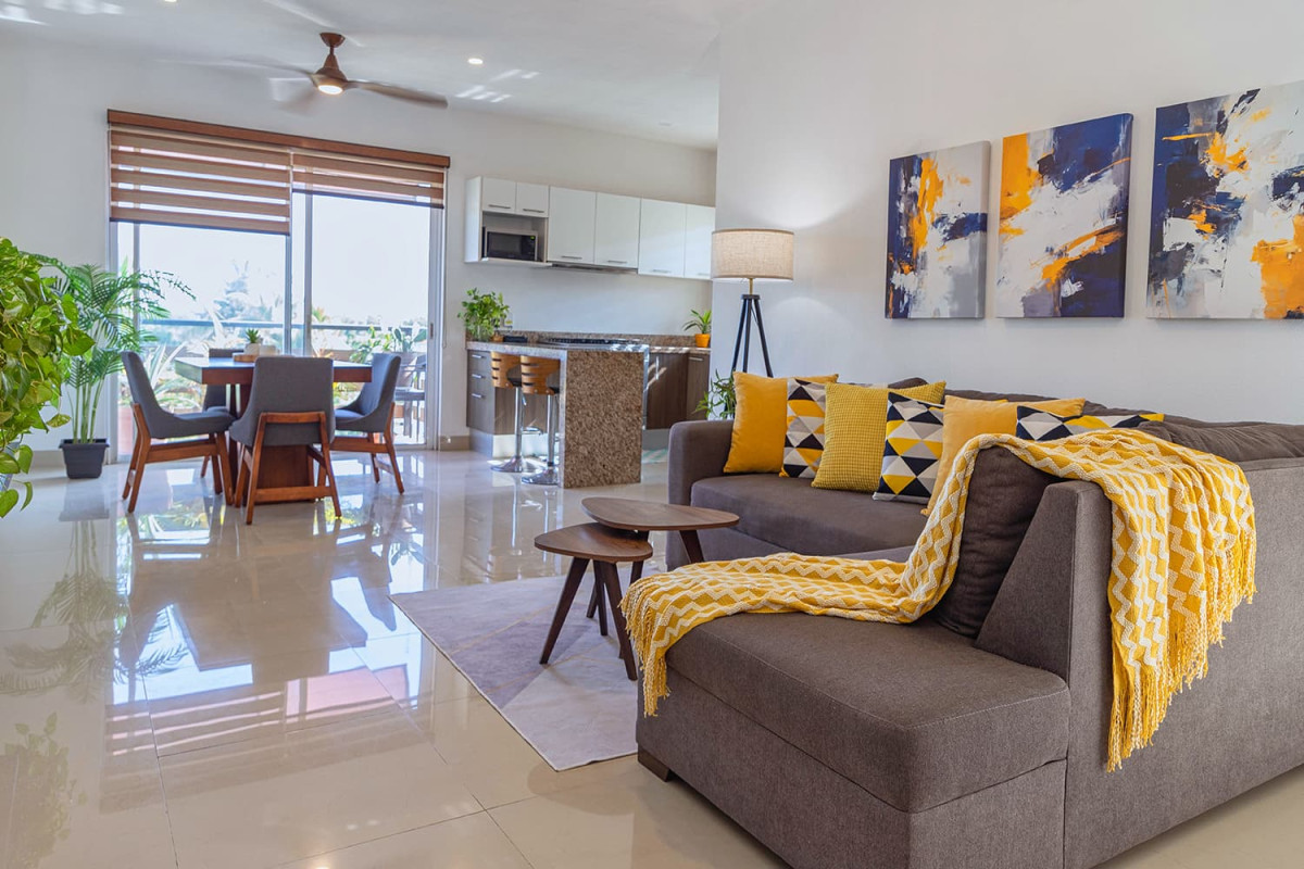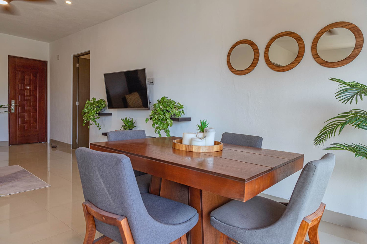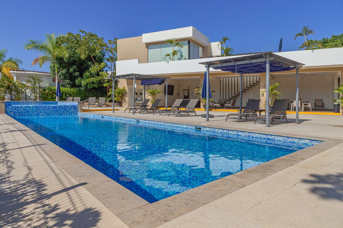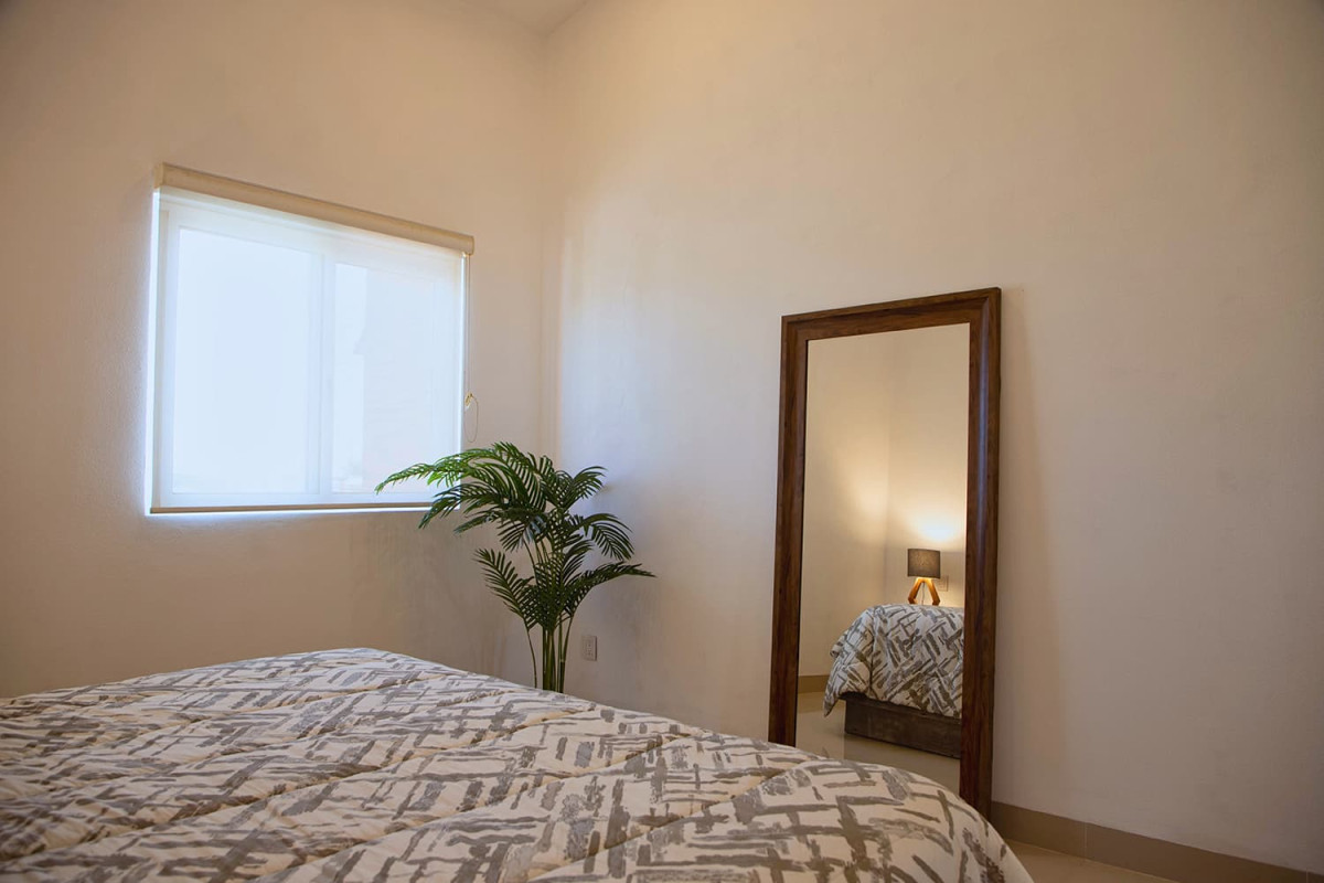 Fully furnished 2-bedroom, 2-bath condo in the gated community Azulejos. Bright, air-conditioned living area with open kitchen, granite countertops, and stainless steel appliances. The primary bedroom features a cathedral ceiling, ensuite bath, and ample closet space. Second bedroom ideal for guests or a home office. Community amenities include gym, jacuzzi, swimming pool, BBQ area, and lounge. Pet-friendly and minutes to Vidanta, golf, beaches, the airport (12 min) and the Romantic Zone (40 min).